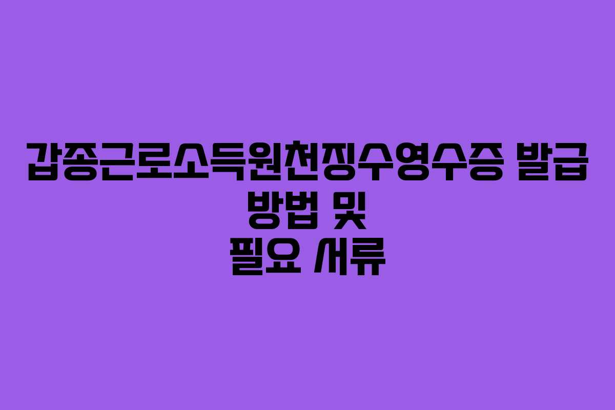 갑종근로소득원천징수영수증은 근로소득자가 연말정산이나 세무 신고를 위해 반드시 요구되는 중요한 서류입니다. 이 영수증을 발급받는 과정은 간단하지만, 필요한 서류와 절차를 이해하고 준비하는 것이 중요합니다. 아래에서는 갑종근로소득원천징수영수증의 발급 방법과 필수 서류에 대해 자세히 알아보겠습니다.