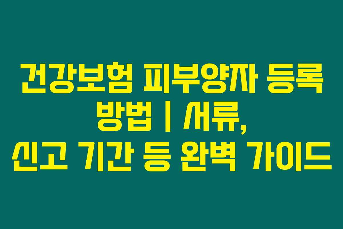 - 방문 신청: 제출 서류를 지참하고 건강보험공단 지사에 방문하여 등록합니다.