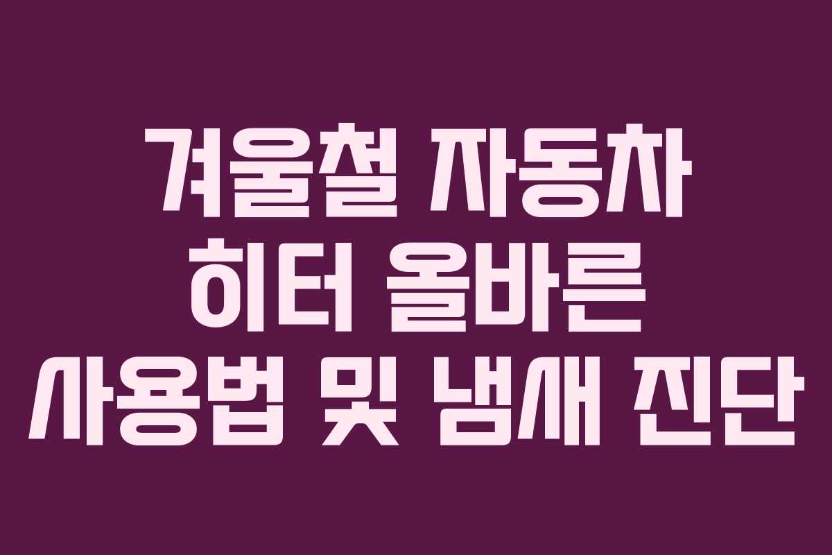 추운 겨울철, 자동차 히터는 필수적인 장치입니다. 그러나 올바른 사용법과 주의사항을 알고 있어야 안전하고 효율적으로 사용할 수 있습니다. 이번 글에서는 히터의 사용법, 주의사항 및 히터에서 나는 냄새로 고장 여부를 진단하는 방법에 대해 알아보겠습니다.