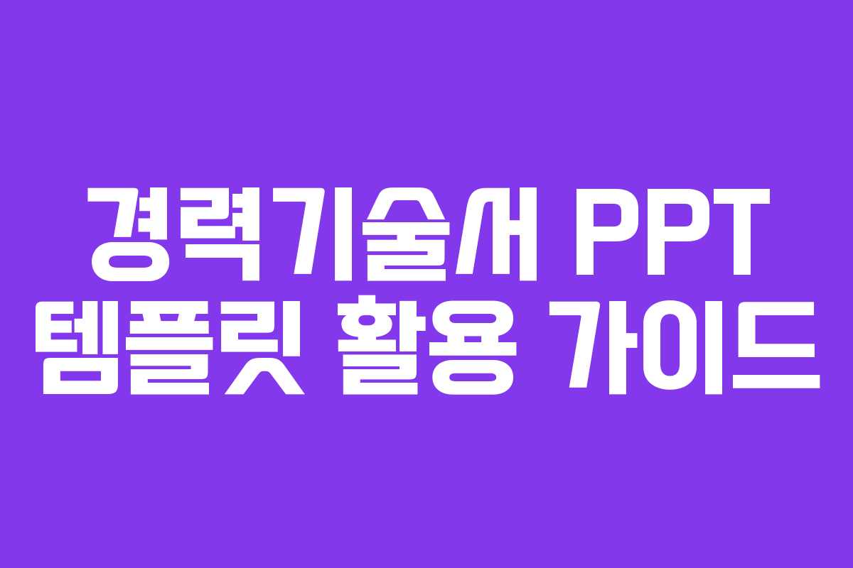 경력기술서는 취업이나 이직 준비 시 필수적인 도구로, 자신의 경험과 역량을 효과적으로 정리할 수 있습니다. 이번 글에서는 경력기술서를 작성할 때 유용한 PPT 템플릿을 소개하고, 이를 활용하는 방법을 안내드리겠습니다.