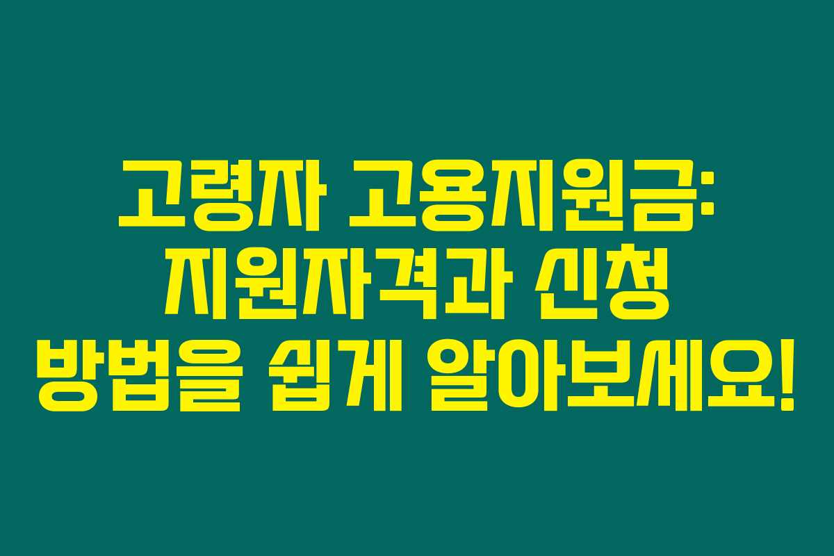 고령자 고용지원금에 대해 궁금해하시는 분이라면 아래 내용을 꼭 확인해보셔야해요! 이 제도를 통해 누가 혜택을 받을 수 있는지와 어떻게 신청할 수 있는지 아는 것은 정말 중요하답니다. 지금부터 자세히 알려드릴게요.