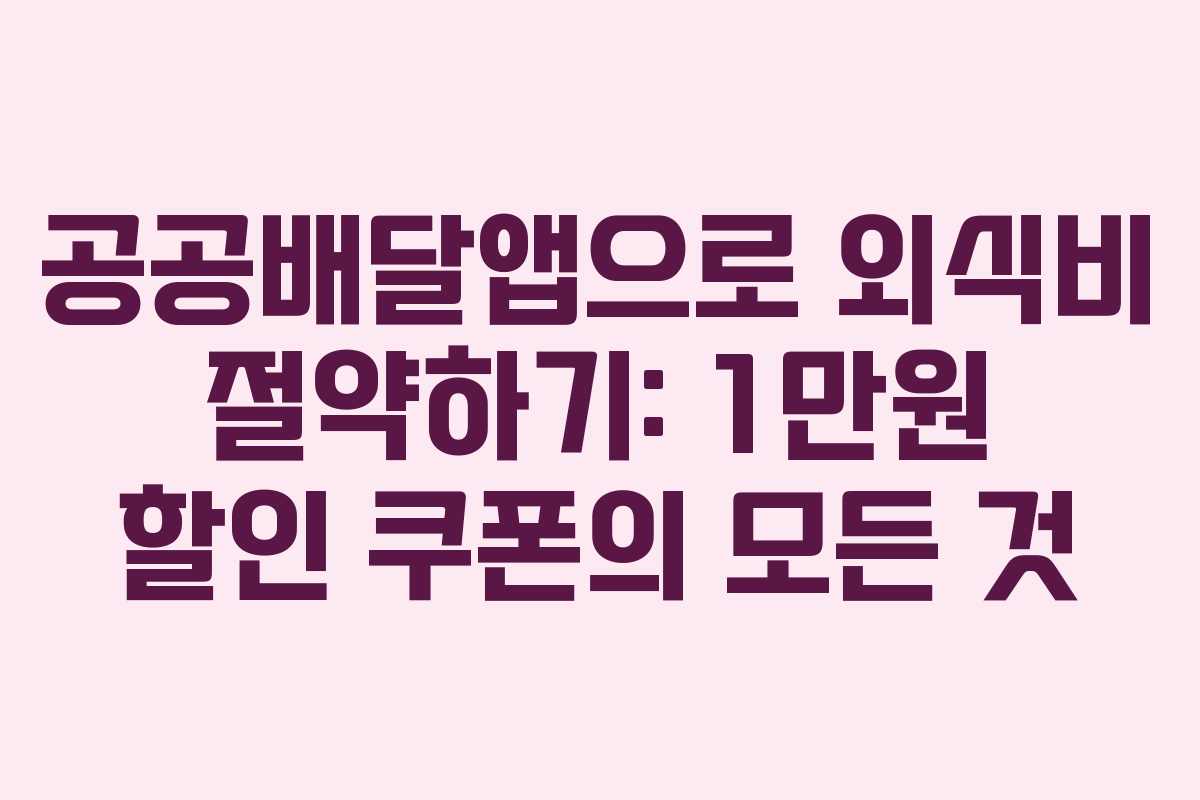 공공배달앱으로 외식비 절약하기: 1만원 할인 쿠폰의 모든 것