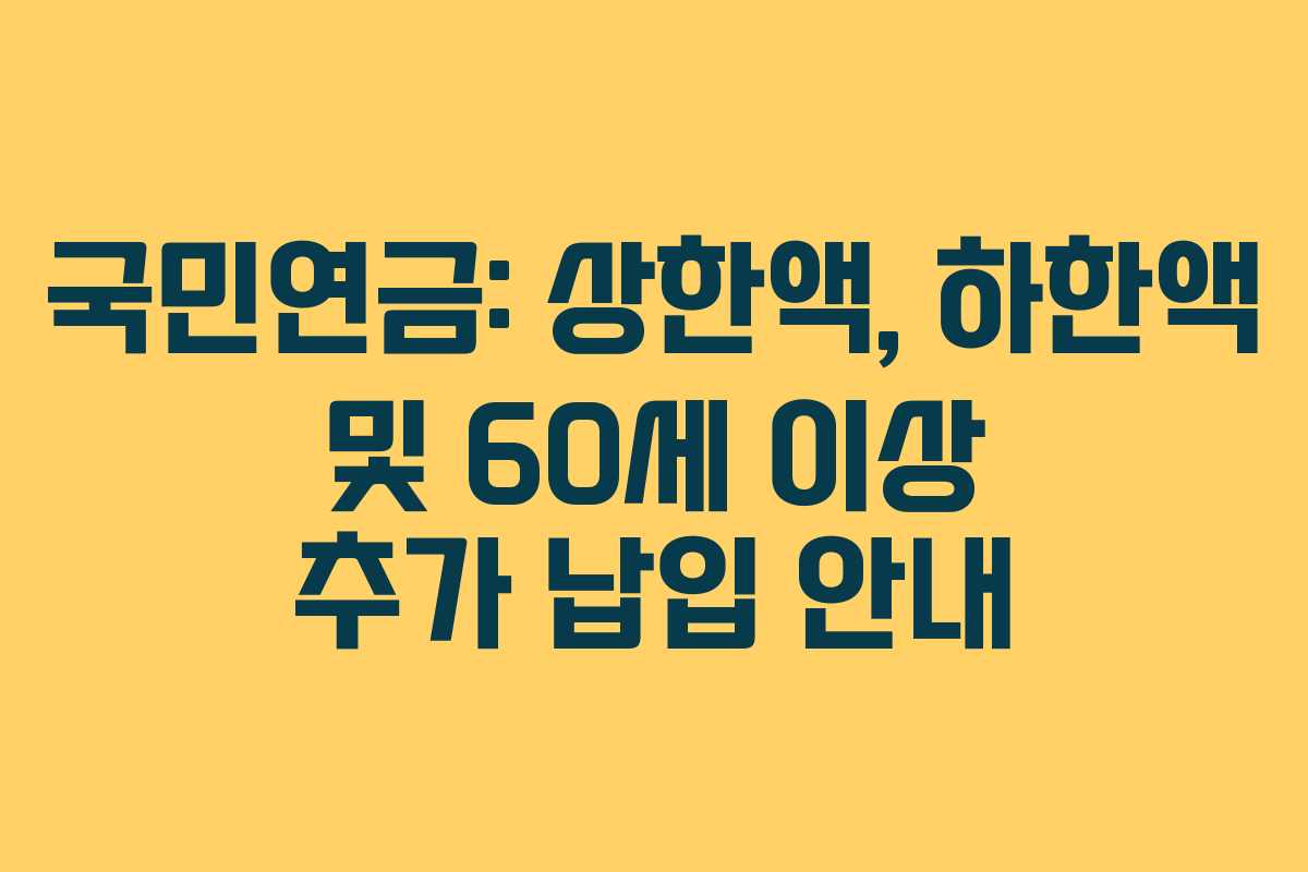 국민연금: 상한액, 하한액 및 60세 이상 추가 납입 안내