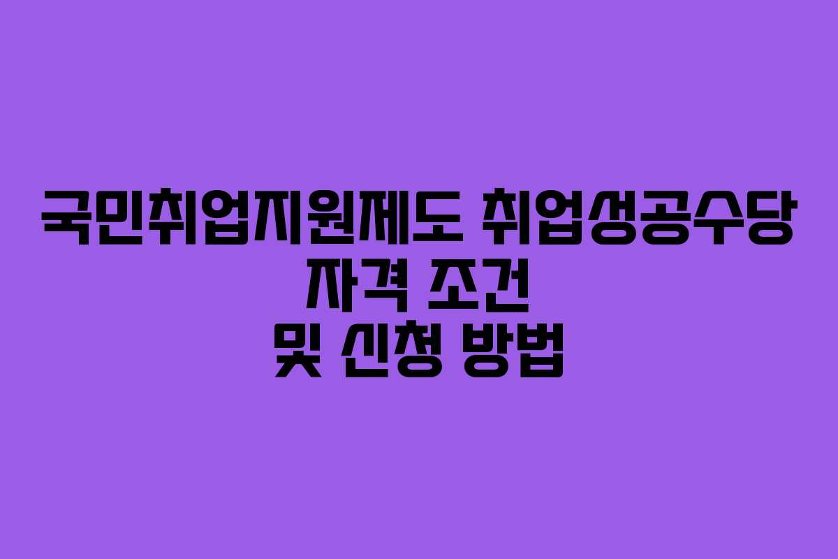 국민취업지원제도는 취업을 원하는 구직자들에게 다양한 지원을 제공하는 제도입니다. 이 제도를 통해 취업성공수당을 받을 수 있으며, 그 자격 조건과 신청 방법에 대해 알아보겠습니다.