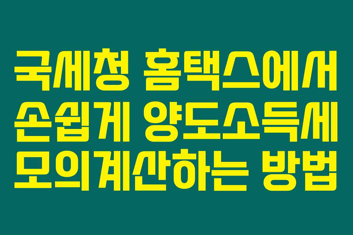 제가 직접 체크해본 바로는, 부동산을 팔 때 내야 하는 양도소득세는 많은 사람들에게 혼란스러운 주제입니다. 이 글에서는 국세청 홈택스를 활용해 양도소득세를 모의계산하는 방법에 대해 설명해 드리겠습니다. 아래를 읽어보시면 부동산 거래 시 양도소득세를 정확히 파악하여 재정 계획을 세우는 데 도움이 될 것입니다.