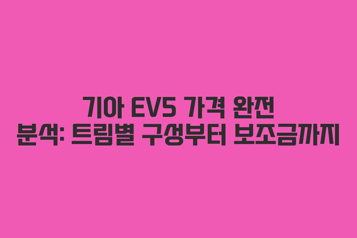기아 EV5 가격 완전 분석: 트림별 구성부터 보조금까지