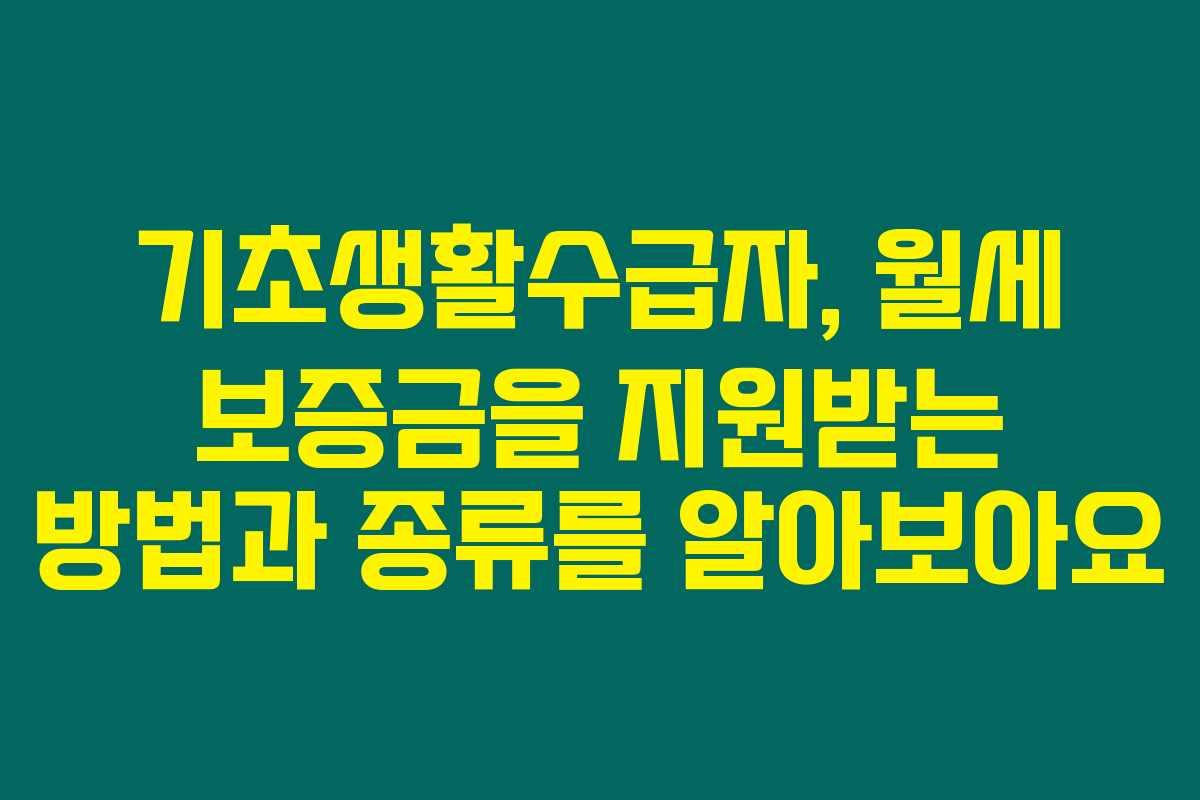 제가 직접 알아본 바로는, 기초생활수급자분들이 월세와 보증금 지원을 받는 데에는 여러 제도가 존재해요. 다양한 지원 종류와 그 신청 방법을 한눈에 정리해 드릴 테니, 아래를 읽어보시면 많은 도움이 될 거예요.