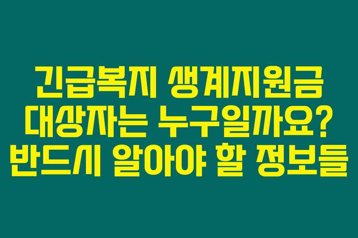 긴급복지 생계지원금 대상자는 누구일까요? 반드시 알아야 할 정보들
