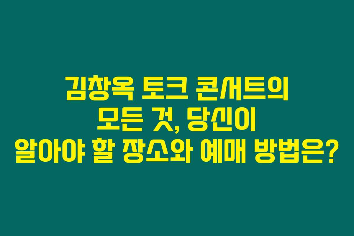 김창옥 토크 콘서트의 모든 것, 당신이 알아야 할 장소와 예매 방법은?