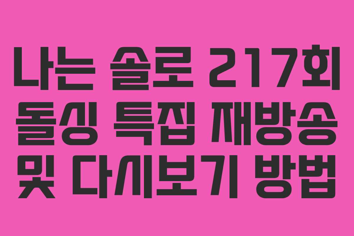 예능 프로그램 ‘나는 솔로’는 많은 이들에게 사랑받는 연애 프로그램으로, 최근에는 217회 돌싱 특집이 큰 화제를 모으고 있습니다. 이번 포스트에서는 217회 방송의 편성표와 함께 재방송 및 다시보기를 할 수 있는 방법을 안내드리겠습니다.