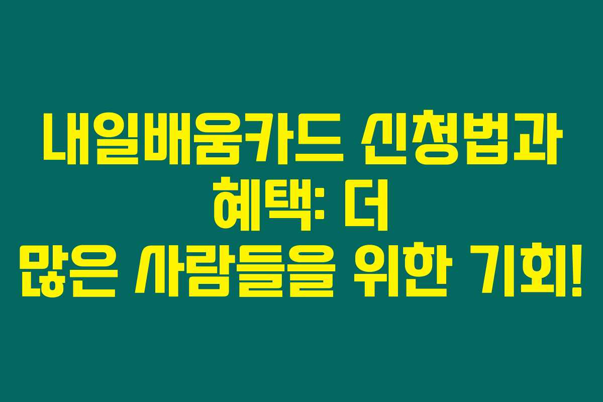 제가 직접 확인 해본 결과로는, 내일배움카드는 취업과 경력 개발을 원하는 분들에게 매우 유용한 정부 프로그램입니다. 잊지 마세요, 내일배움카드는 여러 지원금 혜택을 제공하면서 간편하게 신청할 수 있는 방법이 있으니, 궁금한 점이 많으실 텐데요. 아래를 읽어보시면 이 카드의 신청방법, 대상자, 지원금액을 상세히 정리해드릴게요.