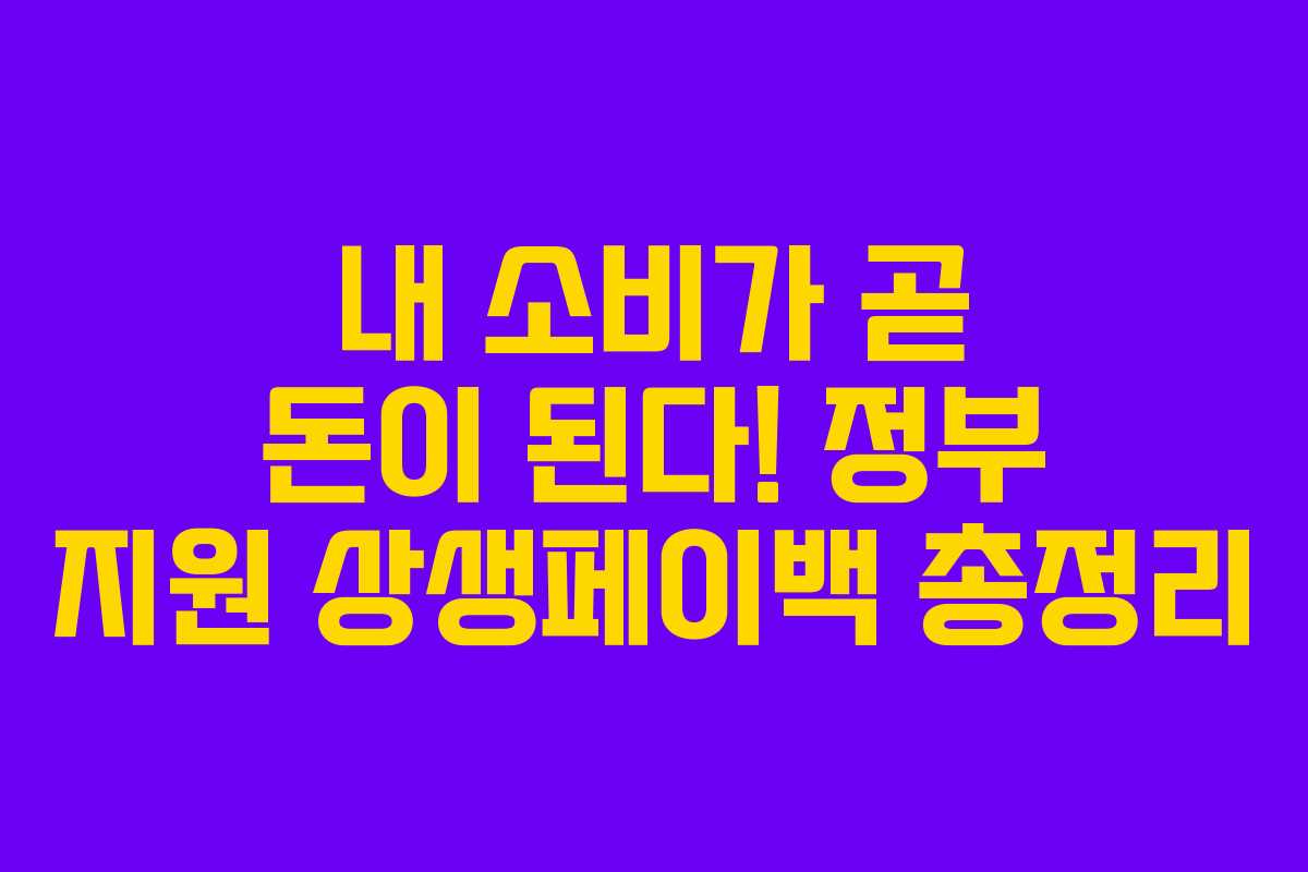 상생페이백은 소비자에게 실질적인 혜택을 제공하는 정부 정책으로, 소비자가 자신의 소비를 통해 다시 돈을 돌려받을 수 있는 기회를 제공합니다. 이번 포스트에서는 상생페이백 제도의 주요 내용을 간략히 정리하겠습니다.