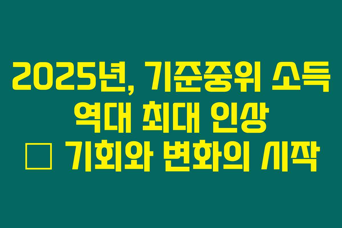 2025년 기준중위 소득의 역대 최대 인상은 저소득층 가정에 많은 기회와 변화의 발판이 될 수 있는 아주 긍정적인 신호입니다. 특히 생계지원 정책이 보다 나은 방향으로 나아가는 모습을 보면서, 여러분도 필요할 때 이런 정책을 잘 활용하시기 바라요. 이러한 변화를 통해 더 많은 이들이 경제적 안정성을 찾을 수 있기를 기원합니다.
