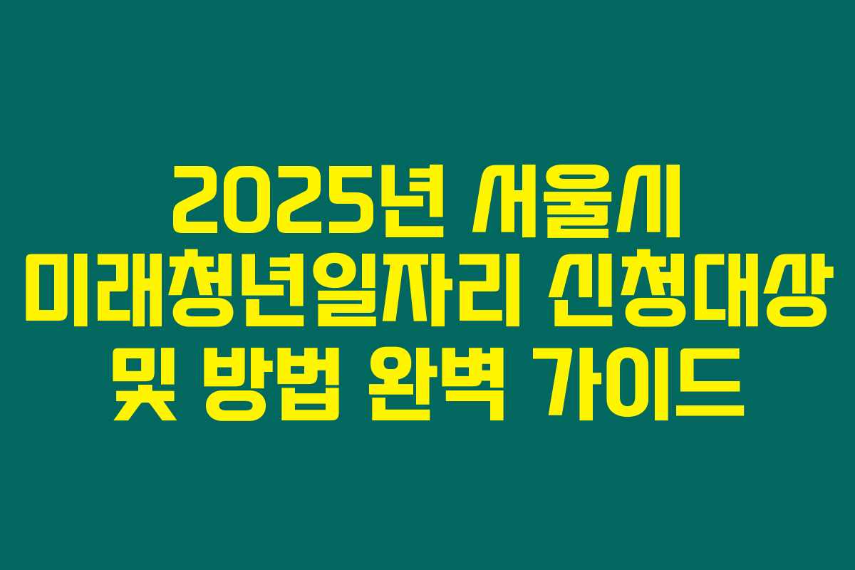 2025년 서울시 미래청년일자리 신청대상 및 방법 완벽 가이드