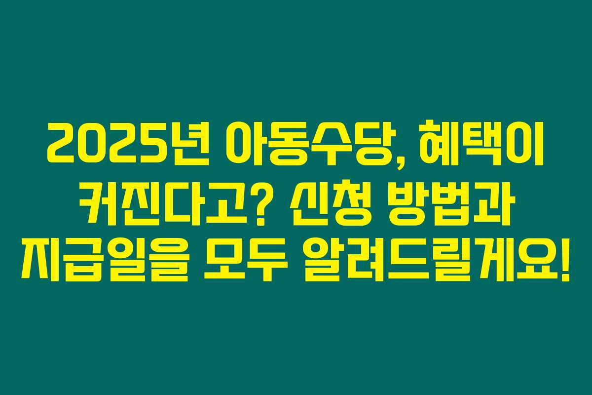 제가 직접 리서치한 바로는 2025년부터 아동수당이 18세까지 확대되면서 많은 부모님들이 이 제도에 대해 다시금 주목하고 있습니다. 아동수당에 관한 궁금증, 특히 신청 방법, 지급일, 금액 등을 한눈에 확인할 수 있게 여러 정보를 정리했어요. 아래를 읽어보시면 많은 도움이 될 거예요!