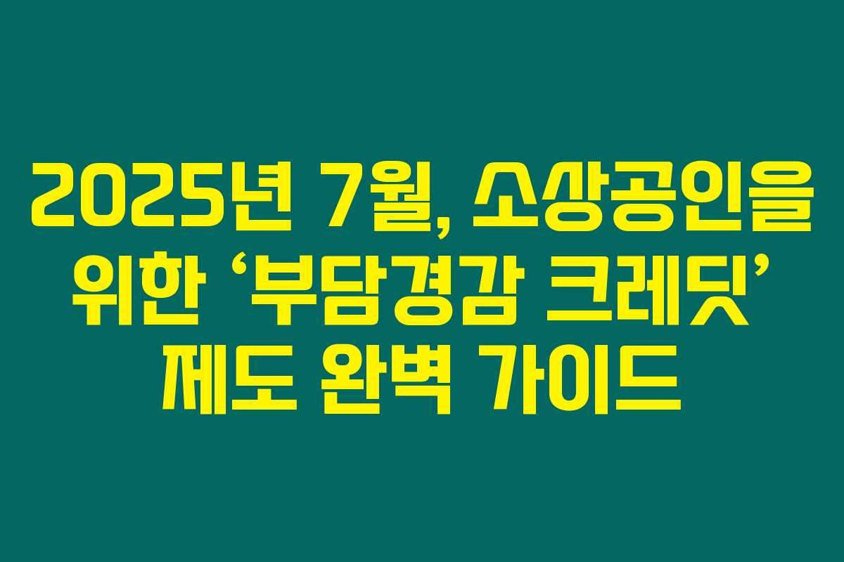 2025년 7월, 소상공인을 위한 ‘부담경감 크레딧’ 제도 완벽 가이드