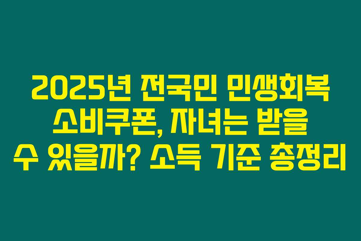 소비쿠폰이 자녀에게 지급될 수 있는지에 대해 많은 분들이 궁금해 하시는 것 같습니다. 자녀도 부모의 소득에 따라 지원의 여부가 결정되기 때문에 주의가 필요합니다.