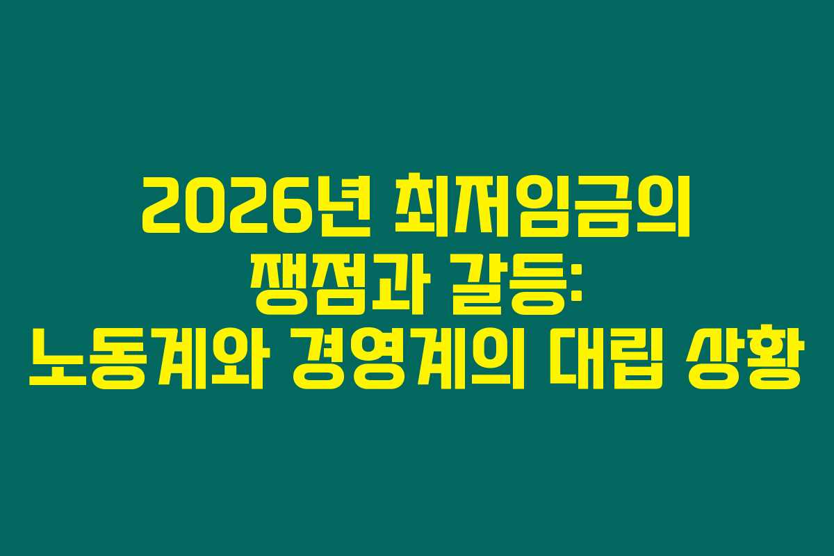 제가 직접 리서치한 바로는, 2026년의 최저임금이 11,500원으로 설정되면서 노동계와 경영계 간의 갈등이 심화되고 있다는 사실이 드러났습니다. 노동계는 최저임금 인상의 필요성을 주장하고 있는 반면, 경영계는 인건비 부담을 우려하며 동결 또는 최소 인상을 요구하고 있습니다. 아래를 읽어보시면 이 갈등의 본질과 향후 전망을 자세하게 안내해드리겠습니다.