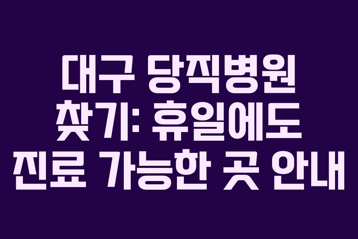 대구 당직병원 찾기: 휴일에도 진료 가능한 곳 안내