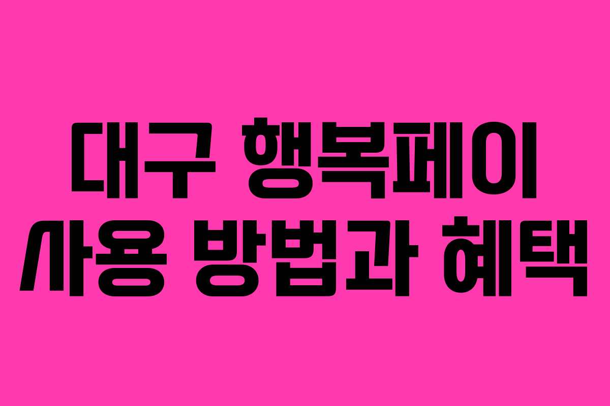 대구 행복페이는 지역 경제를 활성화하기 위해 대구에서 발행한 지역 화폐로, 사용 시 7%의 할인 혜택을 제공합니다. 이번 글에서는 대구 행복페이의 사용 방법, 혜택 및 발급 절차에 대해 자세히 알아보겠습니다.
