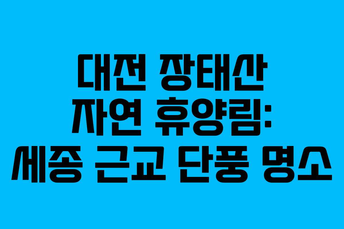 대전 장태산 자연 휴양림은 세종 근교에서 단풍을 즐기기에 최적의 장소입니다. 이곳은 아름다운 자연과 함께 다양한 레저 활동을 즐길 수 있는 공간으로, 많은 방문객들에게 사랑받고 있습니다.