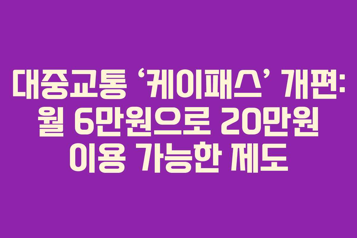 대중교통 ‘케이패스’ 개편: 월 6만원으로 20만원 이용 가능한 제도