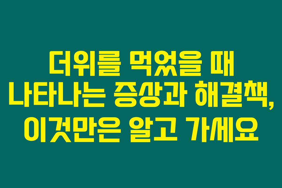여름철 더위에 지친 여러분, 더위로 인한 건강 문제가 걱정되시죠? 만약 더위를 먹었다면 더 심각한 문제로 이어질 수 있답니다. 더위를 먹었을 때의 증상과 원인 그리고 해결 방법을 아래를 읽어보시면 자세히 알아볼 수 있어요. 더위를 피하지 않으면 크게 후회할 수 있으니 주의하세요!