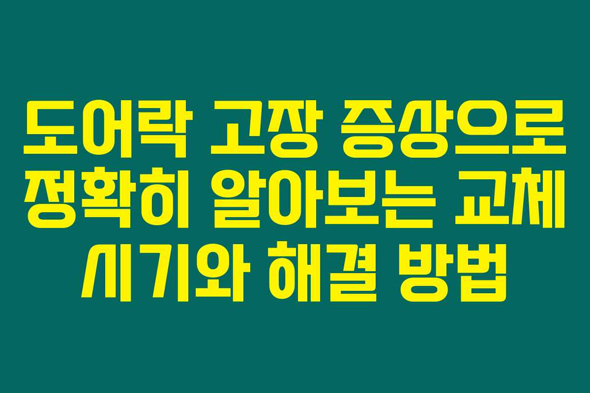 제가 직접 체크해본 결과로는 도어락의 교체 시기를 판단할 수 있는 여러 가지 전조증상이 있음을 알게 되었어요. 이와 같은 증상들이 나타나면 점검을 요청하는 것이 좋습니다.