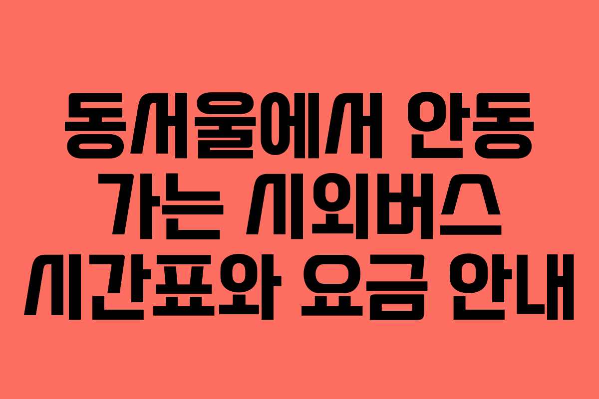 안녕하세요! 이번 글에서는 동서울 종합버스터미널에서 안동으로 가는 시외버스의 시간표와 요금을 자세히 소개하겠습니다. 여러 노선에 대한 정보를 확인해 보세요.