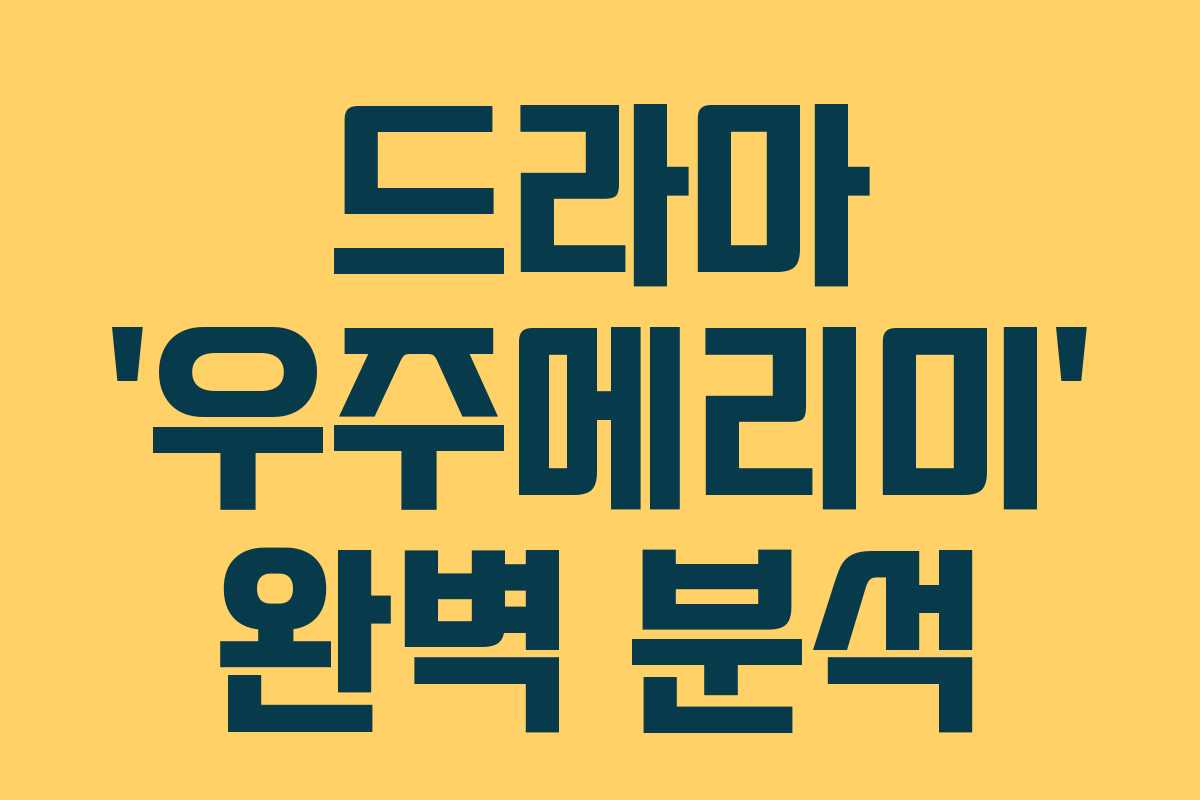 최근 방영 중인 SBS 금토드라마 ‘우주메리미’가 시청자들 사이에서 큰 화제를 모으고 있습니다. 이 드라마는 현실 풍자와 로맨틱 코미디의 조화로 첫 방송부터 높은 시청률을 기록하며 인기를 끌고 있습니다. 최우식과 정소민의 케미스트리가 뛰어난 이 드라마의 줄거리, 등장인물, 방송 정보 등을 정리해 보겠습니다.