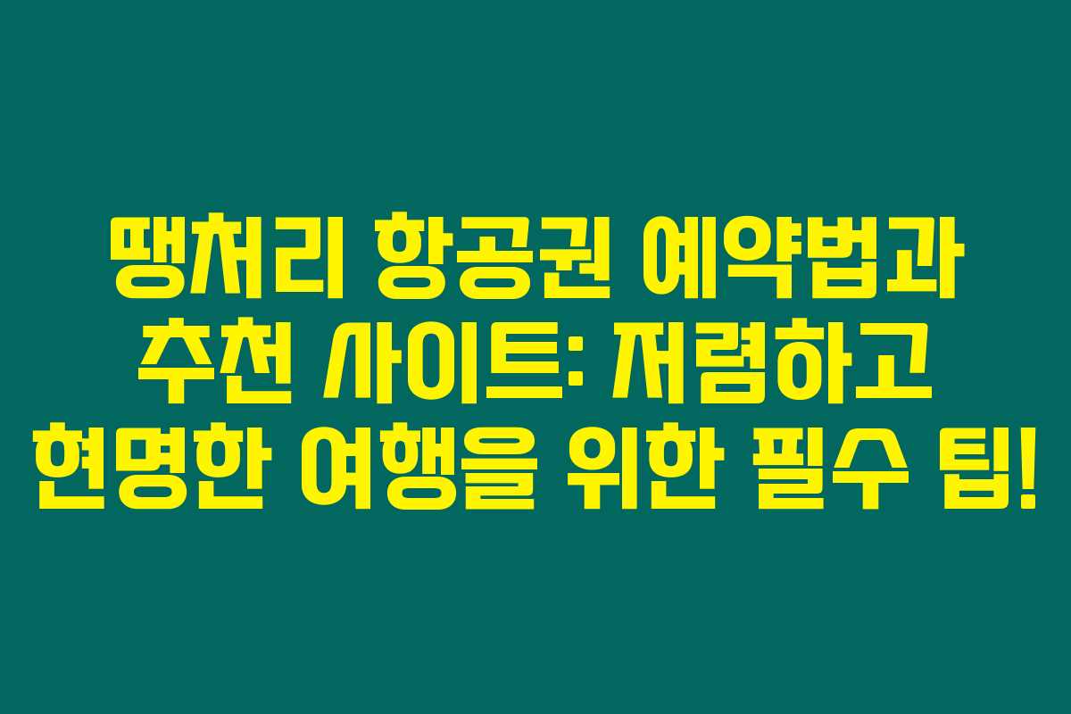 국내항공권 값이 너무 비싸서 고민이신가요? 국내항공권 땡처리 예약을 통해 저렴하게 여행할 수 있는 방법을 안내해드릴게요! 땡처리 예약은 특정 조건 하에 여행자가 얻을 수 있는 특가 항공권으로, 이 글에서는 땡처리 항공권의 개념부터 예약 방법까지 알려드리니, 아래를 읽어보시면 많은 도움이 될 거예요.