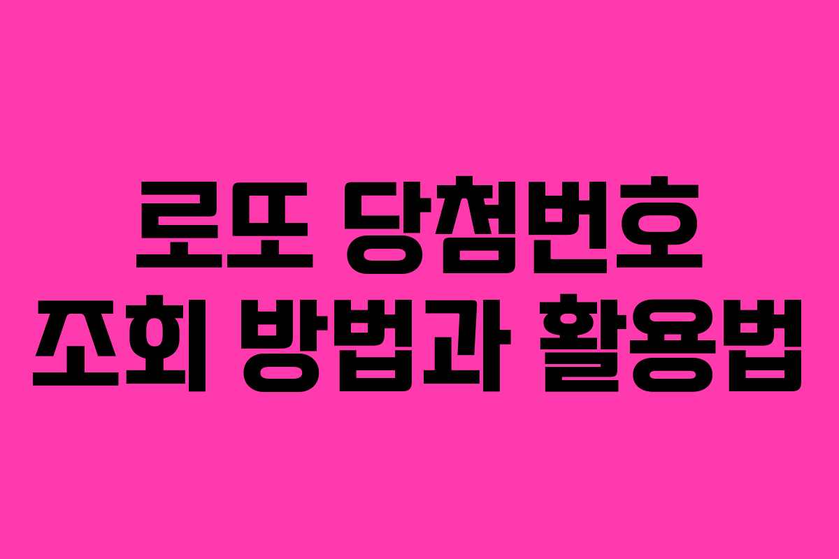 로또는 많은 사람들에게 꿈과 희망을 주는 복권입니다. 따라서 로또 당첨번호를 조회하는 방법과 그 활용법에 대해 알아보겠습니다.