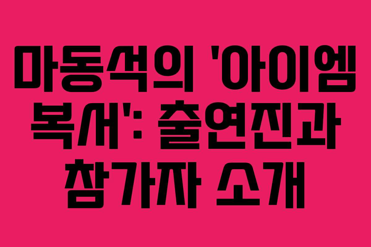 마동석이 출연하는 tvN 예능 프로그램 ‘아이엠 복서’는 복싱을 주제로 한 서바이벌 프로그램으로, 많은 기대를 모으고 있습니다. 2025년 11월 21일 첫 방송을 시작으로 총 10회에 걸쳐 진행될 예정입니다. 이번 프로그램은 마동석이 복싱에 대한 진정성과 열정을 표현하기 위해 기획되었습니다.