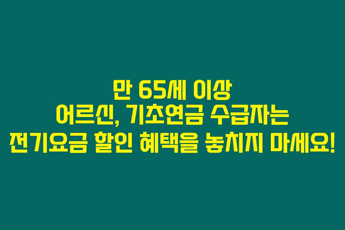 만 65세 이상 어르신과 기초연금 수급자는 전기요금 할인을 꼭 신청하여 큰 혜택을 누리시길 바랍니다. 추가적인 궁금증이 있다면 언제든지 물어보세요!