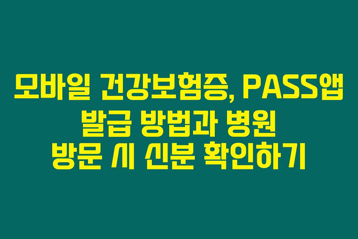불편한 건강보험증 대신 스마트폰에서 손쉽게 확인할 수 있는 모바일 건강보험증에 대해 궁금하신가요? 특히 병원 방문 시 신분 확인이 필수라는 새로운 제도에 따라 모바일 건강보험증을 발급받는 방법과 활용법을 반드시 파악해야 합니다. 아래를 읽어보시면 간단한 단계로 모바일 건강보험증을 발급받고 효율적으로 활용하는 방법을 알게 될 거예요.