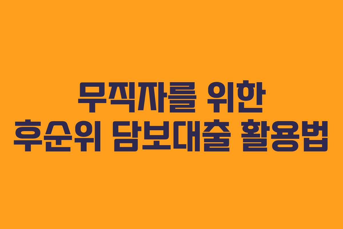 질문1: 무직자도 후순위 담보대출이 가능한가요?