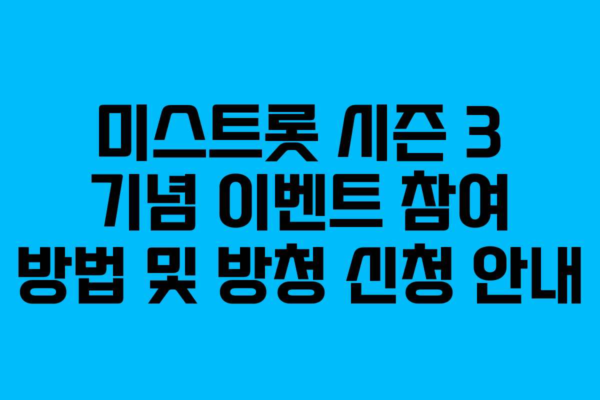 미스트롯 시즌 3가 대한민국에 다시 트로트 열풍을 일으키고 있습니다. 이 프로그램의 기념 이벤트와 1월 방청 신청 방법에 대해 알아보겠습니다.
