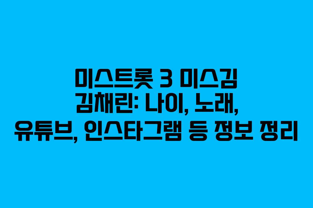 최근 TV조선의 인기 프로그램 미스트롯 3에서 주목받고 있는 참가자 중 한 명이 바로 미스김, 본명 김채린입니다. 1월 4일 방송된 3회에서 그녀는 뛰어난 실력으로 모든 마스터의 극찬을 받으며 우승 후보로 급부상했습니다. 이번 포스팅에서는 김채린에 대한 다양한 정보를 정리해 보겠습니다.