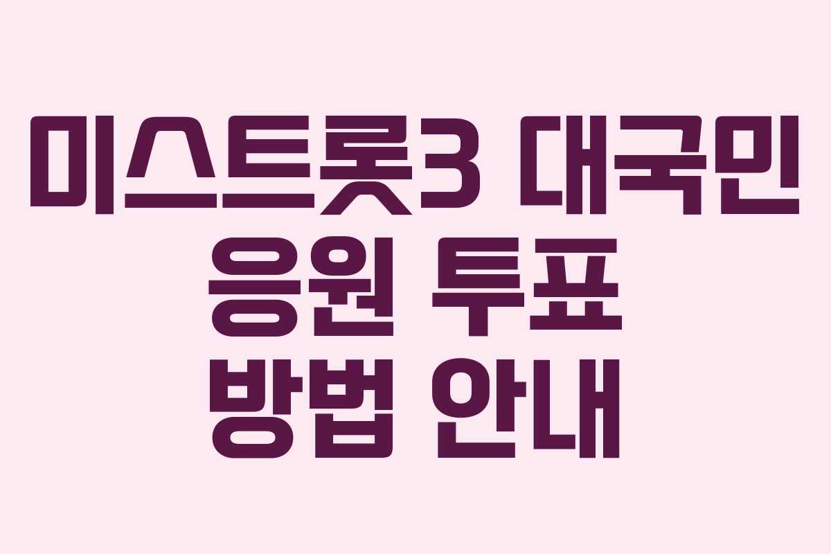 최근 큰 인기를 얻고 있는 ‘미스트롯3’의 대국민 응원 투표 방법을 소개합니다. 투표 방법을 알고 싶었던 분들은 이 글을 통해 자세한 정보를 확인하시기 바랍니다.