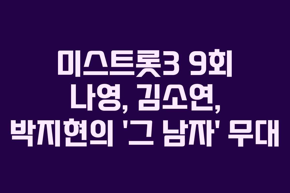 미스트롯3 9회에서는 나영, 김소연, 박지현이 함께 ‘그 남자’라는 곡으로 특별한 무대를 선보였습니다. 이들은 각각의 매력을 발산하며 시청자들에게 깊은 감동을 주었습니다. 이 프로그램은 매주 목요일 오후 10시에 방송되며, 트로트의 매력을 한껏 느끼게 해주는 예능 프로그램입니다.