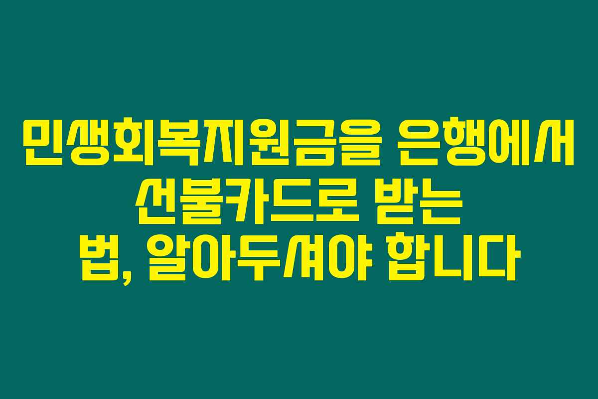 민생회복지원금을 선불카드로 받는 것은 쉽지 않은 선택이에요. 어떤 지자체에서는 특정 은행과 협력하여 발급하지만 모든 지역이 아닐 수도 있어요. 혹시 선불카드로 받고 싶다면 직접 거주하고 있는 시·군·구청이나 관련 콜센터에 문의해서 확인하는 게 좋답니다.