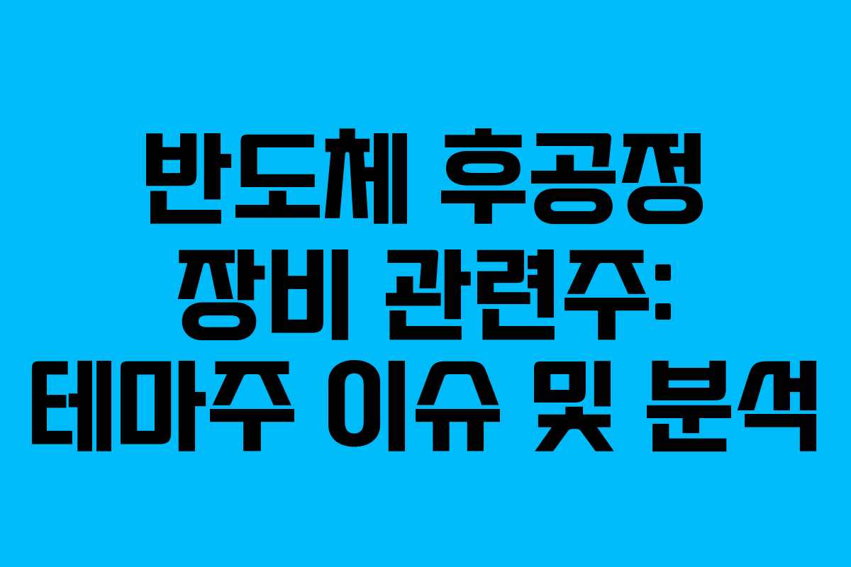 반도체 산업은 다양한 공정으로 이루어져 있으며, 그중 후공정은 특히 중요합니다. 후공정 장비는 반도체 테스트와 패키징에 필수적인 역할을 하며, 종합반도체 및 파운드리 업체의 증설에 따라 관련주들이 수혜를 입을 것으로 예상됩니다.