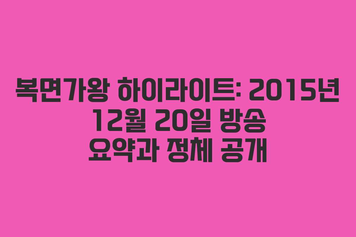 복면가왕 하이라이트: 2015년 12월 20일 방송 요약과 정체 공개