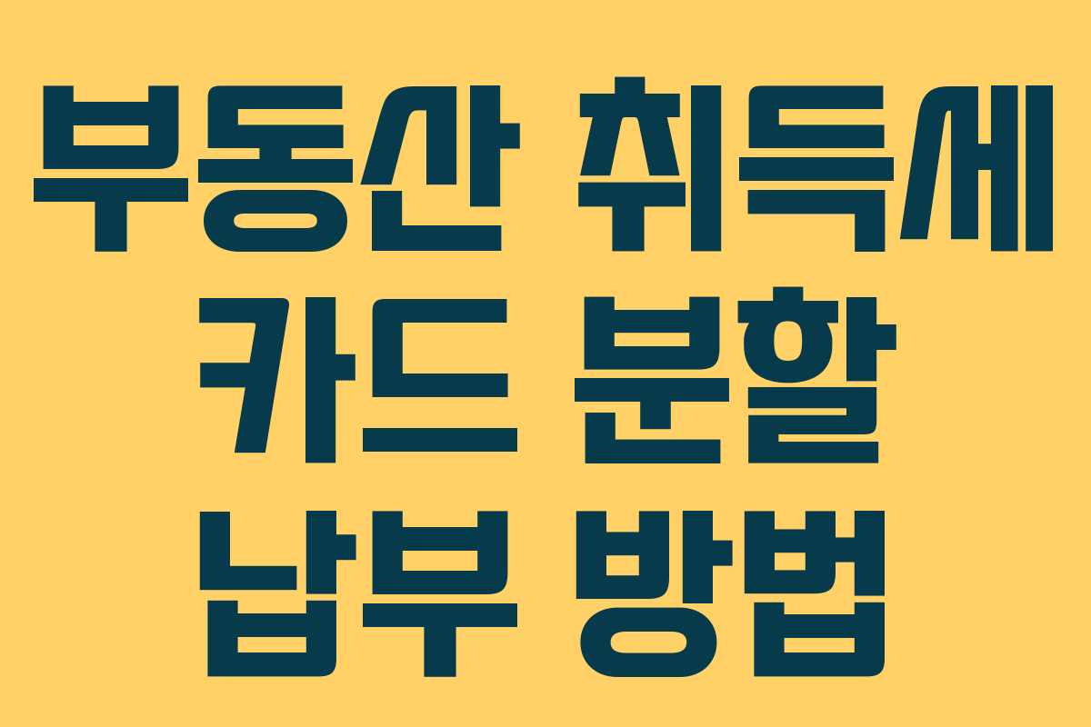 부동산을 취득할 때 발생하는 취득세는 상당한 금액이 될 수 있어, 많은 사람들이 부담을 느끼곤 합니다. 특히, 단일 카드로 납부하기에 한도가 부족한 경우가 많습니다. 이런 상황에서 신용카드의 분할 납부 기능을 활용하면 경제적 부담을 줄일 수 있습니다. 이번 글에서는 취득세 카드 분할 납부 방법과 유의사항에 대해 알아보겠습니다.