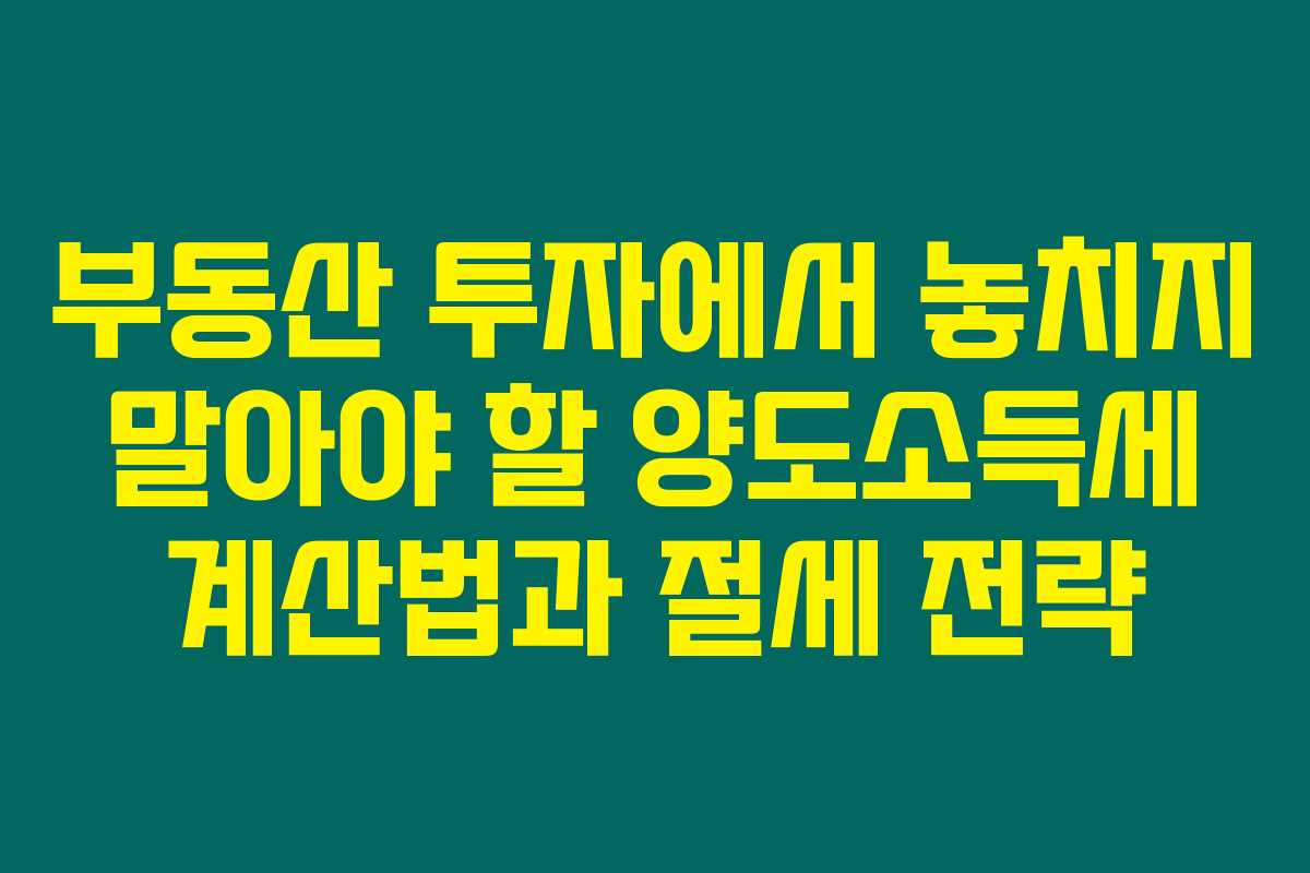부동산 투자에서 놓치지 말아야 할 양도소득세 계산법과 절세 전략