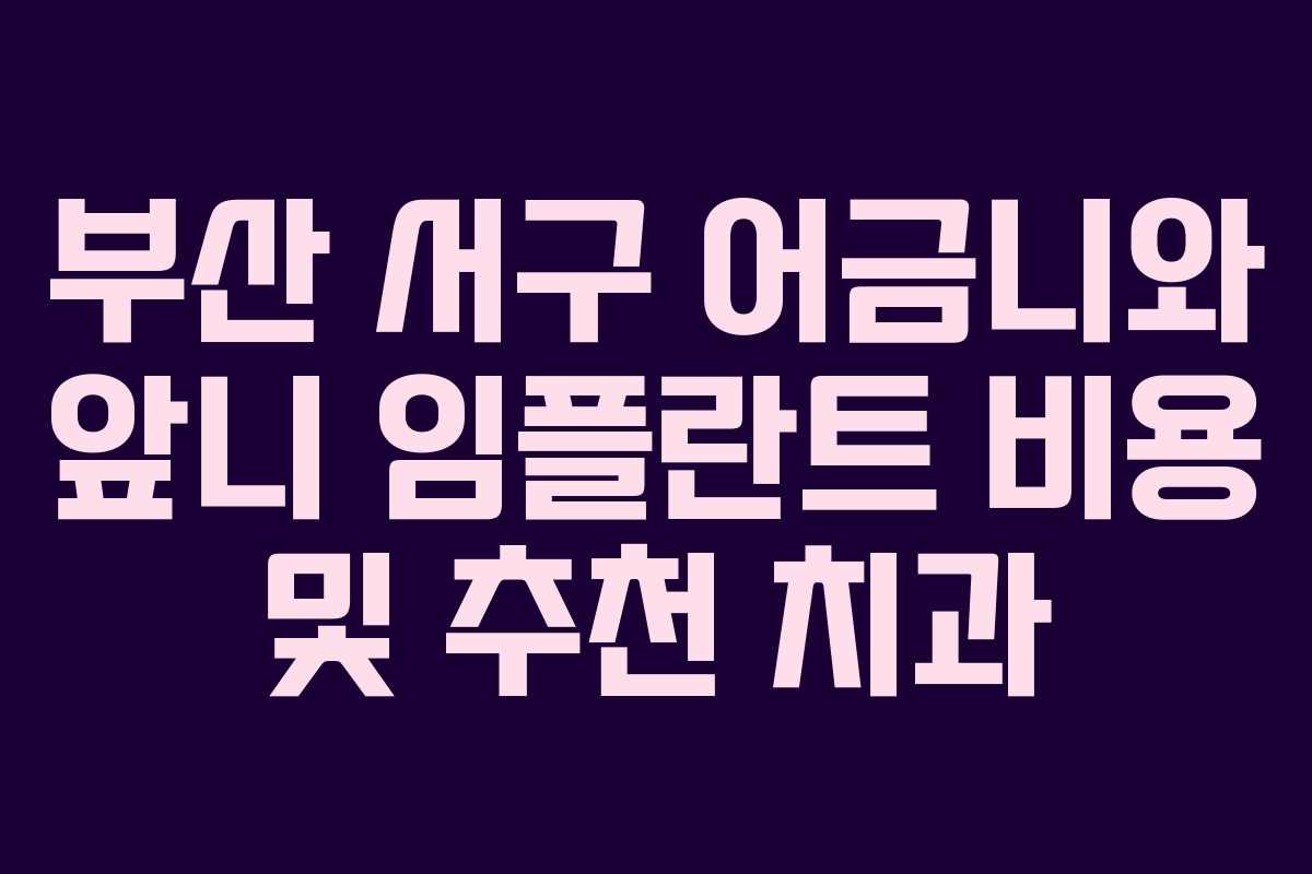 부산 서구에서 어금니와 앞니 임플란트를 고려하고 계신가요? 본 글에서는 임플란트 시술 비용 비교와 추천 치과 정보를 제공하여, 여러분의 선택에 도움이 되고자 합니다.