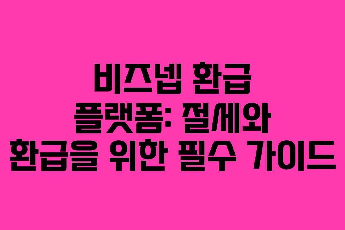 비즈넵 환급 플랫폼: 절세와 환급을 위한 필수 가이드