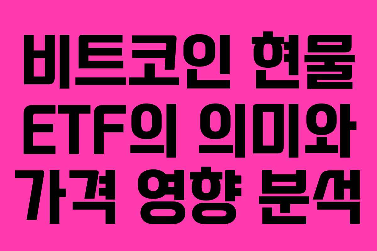 비트코인 현물 ETF는 비트코인에 직접 투자할 수 있는 새로운 투자 수단으로, 금융 시장에서 큰 주목을 받고 있습니다. 이번 글에서는 현물 ETF의 개념과 선물 ETF와의 차이점, 그리고 이러한 ETF가 승인될 경우 비트코인 가격에 미칠 영향을 살펴보겠습니다.