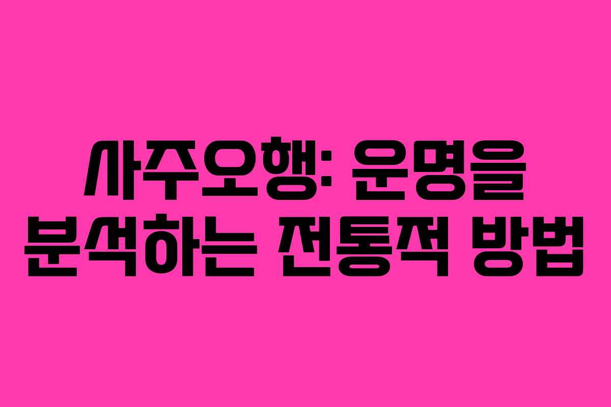 사주오행은 개인의 출생 년도, 월, 일, 시간을 바탕으로 다섯 가지 기운인 불(화), 나무(목), 흙(토), 쇠(금), 물(수)을 분석하여 인생의 여러 측면을 예측하는 기법입니다. 이 방법은 개인의 운세, 결혼 궁합, 건강, 직업, 성격 등을 분석하는 데 사용되며, 각 오행이 개인의 특성과 운명에 미치는 영향을 설명합니다. 하지만 과학적으로 검증된 방법은 아니기에, 신뢰도는 개인의 믿음에 따라 달라질 수 있습니다.