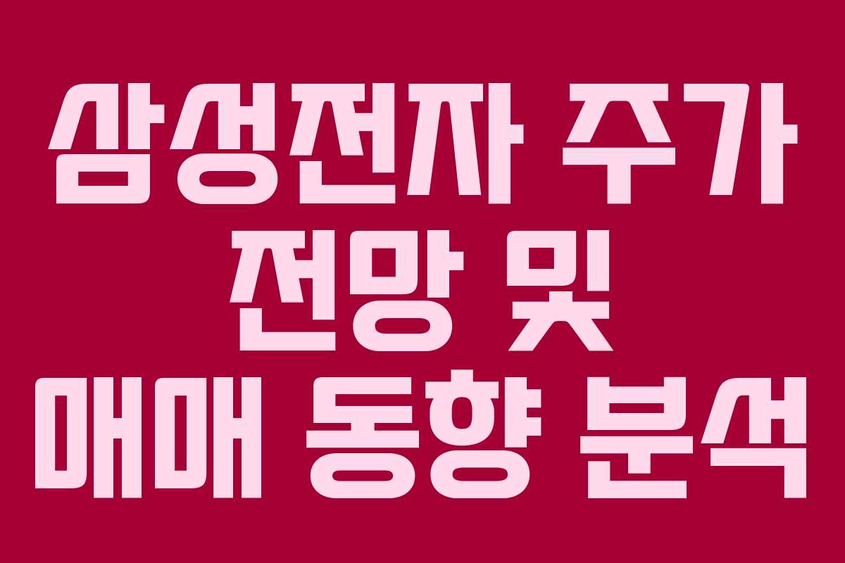 삼성전자는 한국을 대표하는 글로벌 전자기업으로, 주식 투자자들 사이에서 많은 관심을 받고 있습니다. 본 글에서는 삼성전자의 주가 전망, 매매 동향과 함께 기업 분석을 통해 투자 결정을 돕고자 합니다.